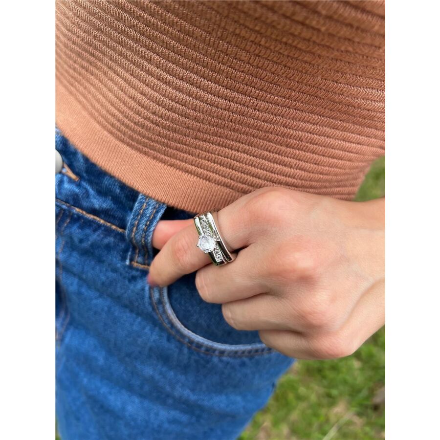 ANEL TRIPLO SOLITÁRIO LUXO GIRASSOL – RÓDIO BRANCO CRISTAL TAM 15