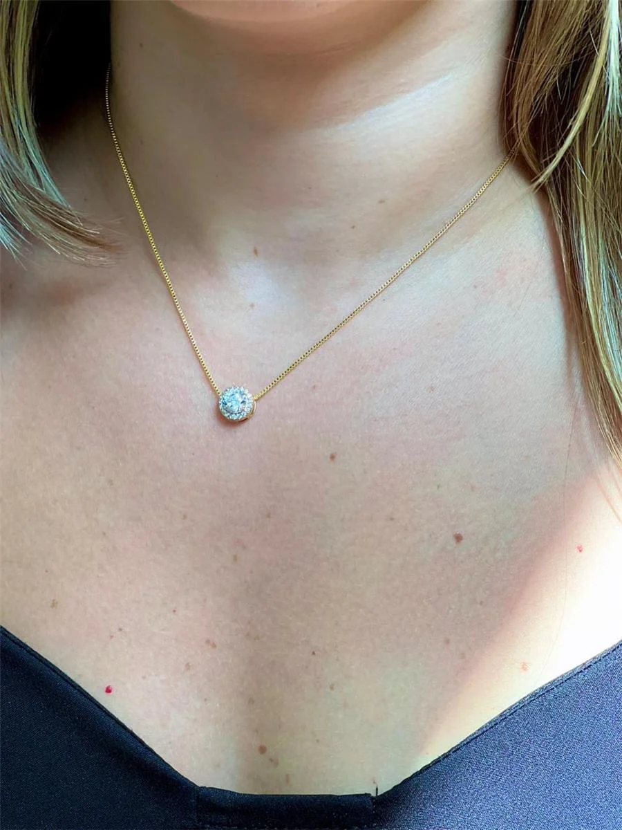 Colar Ponto De Luz Borda Cravejada Banhado a Ouro 18K. Peças delicadas são indispensáveis para quem quer manter um mostruário completo e atrativo. Com design sutil e traços atemporais, elas se adaptam a diferentes estilos e ocasiões, conquistando tanto clientes que preferem acessórios discretos quanto aquelas que gostam de compor com várias peças. Por serem versáteis e fáceis de combinar, têm alto potencial de venda e ajudam a manter um giro constante na maleta. Ter opções delicadas no mostruário é oferecer sempre uma escolha certeira, que desperta desejo imediato e contribui para aumentar suas vendas. O material de base das nossas semijoias é composto por uma liga metálica de cobre e zinco, que recebe um banho de ouro. Além do banho, aplicamos uma camada de verniz protetor que aumenta a durabilidade das peças. Nossas semijoias não possuem níquel em sua composição, e utilizamos banho de paládio, tornando-as hipoalergênicas. Contamos com banho próprio, o que nos permite oferecer garantia .