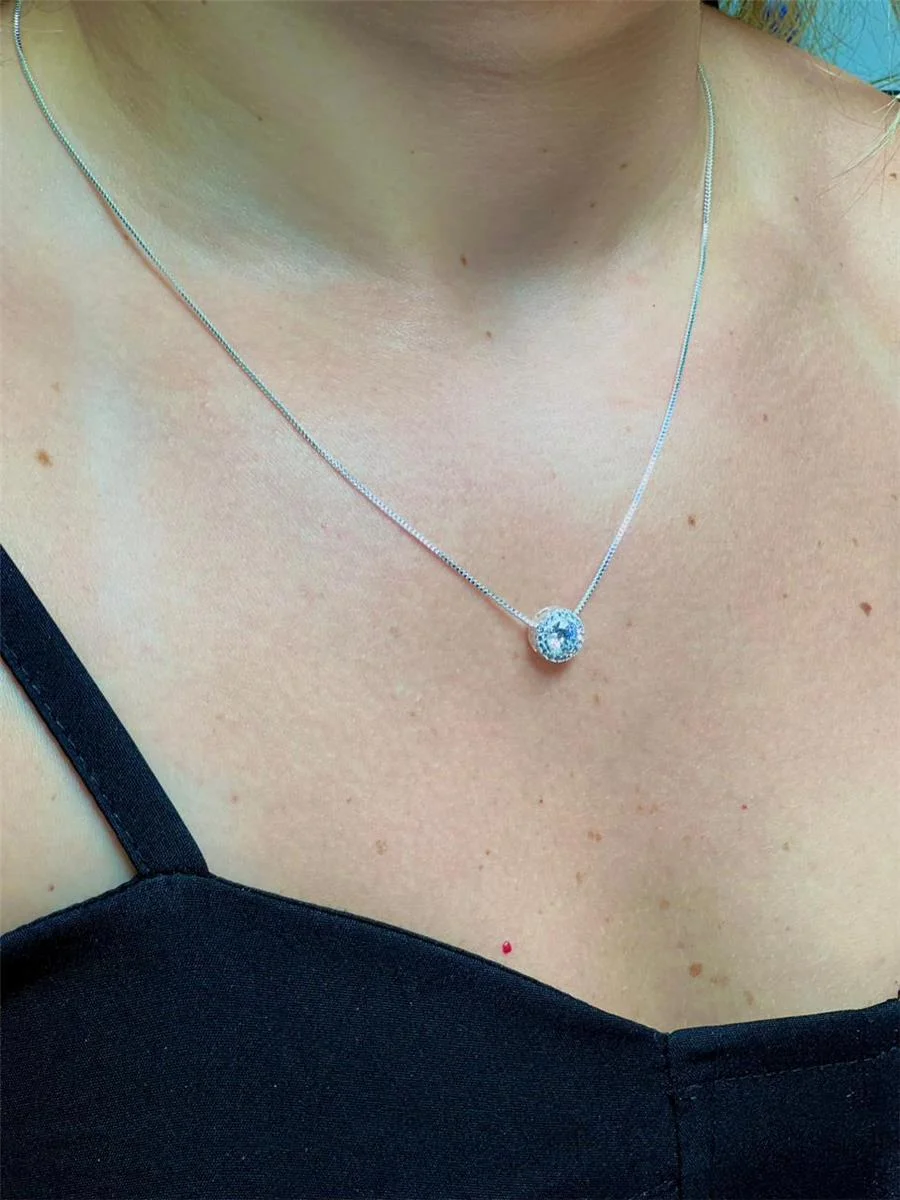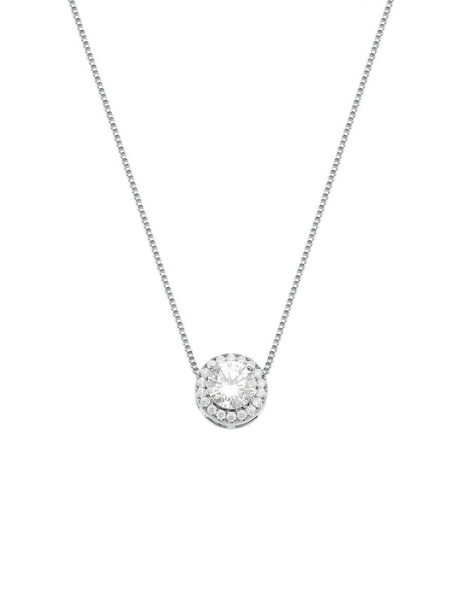 Colar Ponto De Luz Borda Cravejada | Banho De Prata