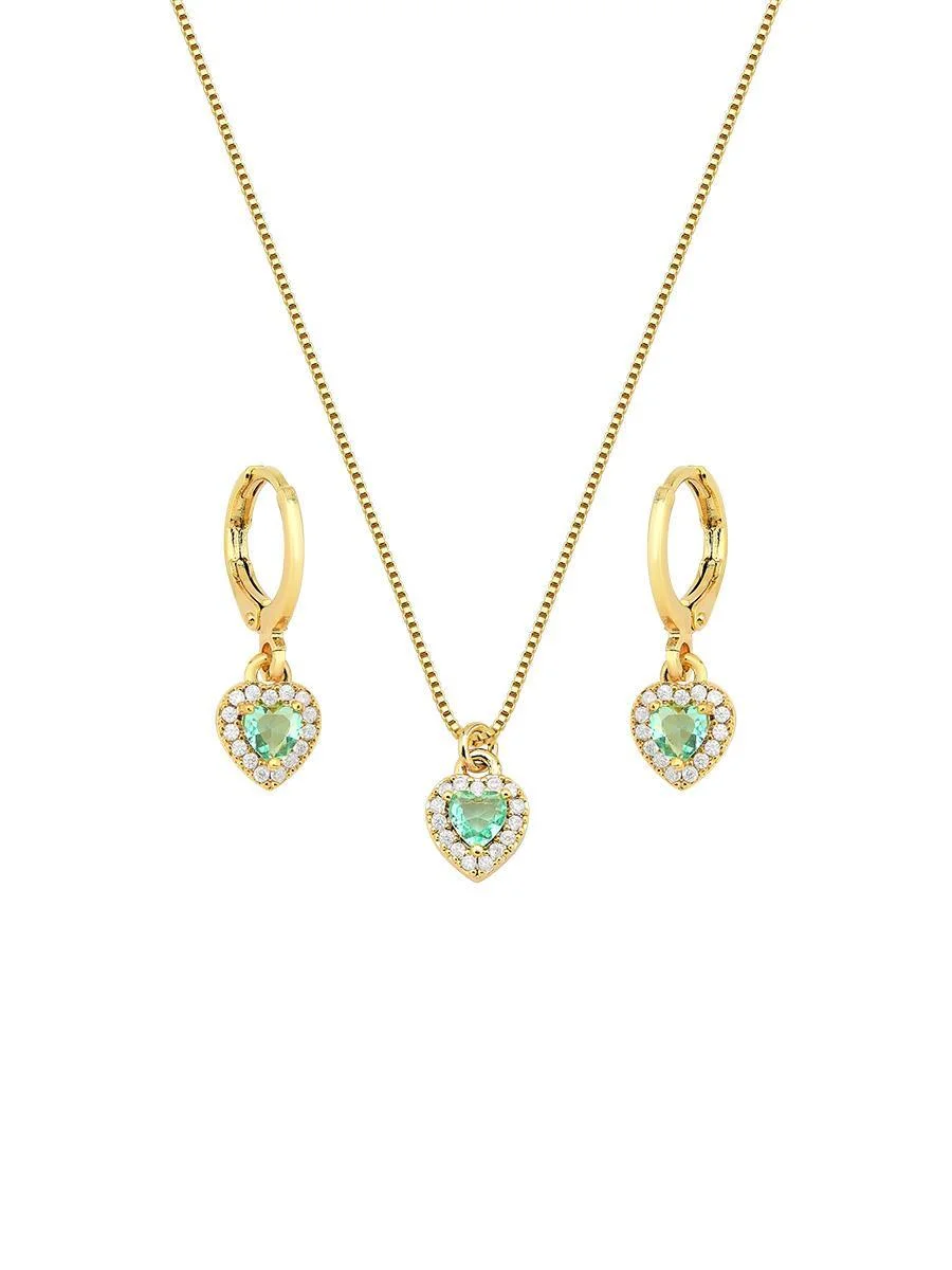 Conjunto Coração Turmalina Cravejado Banhado a Ouro 18K. Os Conjuntos de Colar e Brinco são semijoias indispensáveis para seu mostruário, oferecendo uma opção prática e sofisticada que atende aos clientes em busca de presentes elegantes e combinações versáteis. Combinando um colar e um par de brincos em perfeita harmonia, cada conjunto traz um visual que agrada a diferentes estilos. Além de serem uma excelente escolha para presentear em ocasiões especiais, os conjuntos permitem a criação de looks únicos. Cada peça pode ser usada individualmente ou combinada com outras joias, ideal para quem gosta de montar mixes modernos e cheios de estilo. O material de base das nossas semijoias é composto por uma liga metálica de cobre e zinco, que recebe um banho de ouro. Além do banho, aplicamos uma camada de verniz protetor que aumenta a durabilidade das peças. Nossas semijoias não possuem níquel em sua composição, e utilizamos banho de paládio, tornando-as hipoalergênicas. Contamos com banho próprio, o que nos permite oferecer garantia .