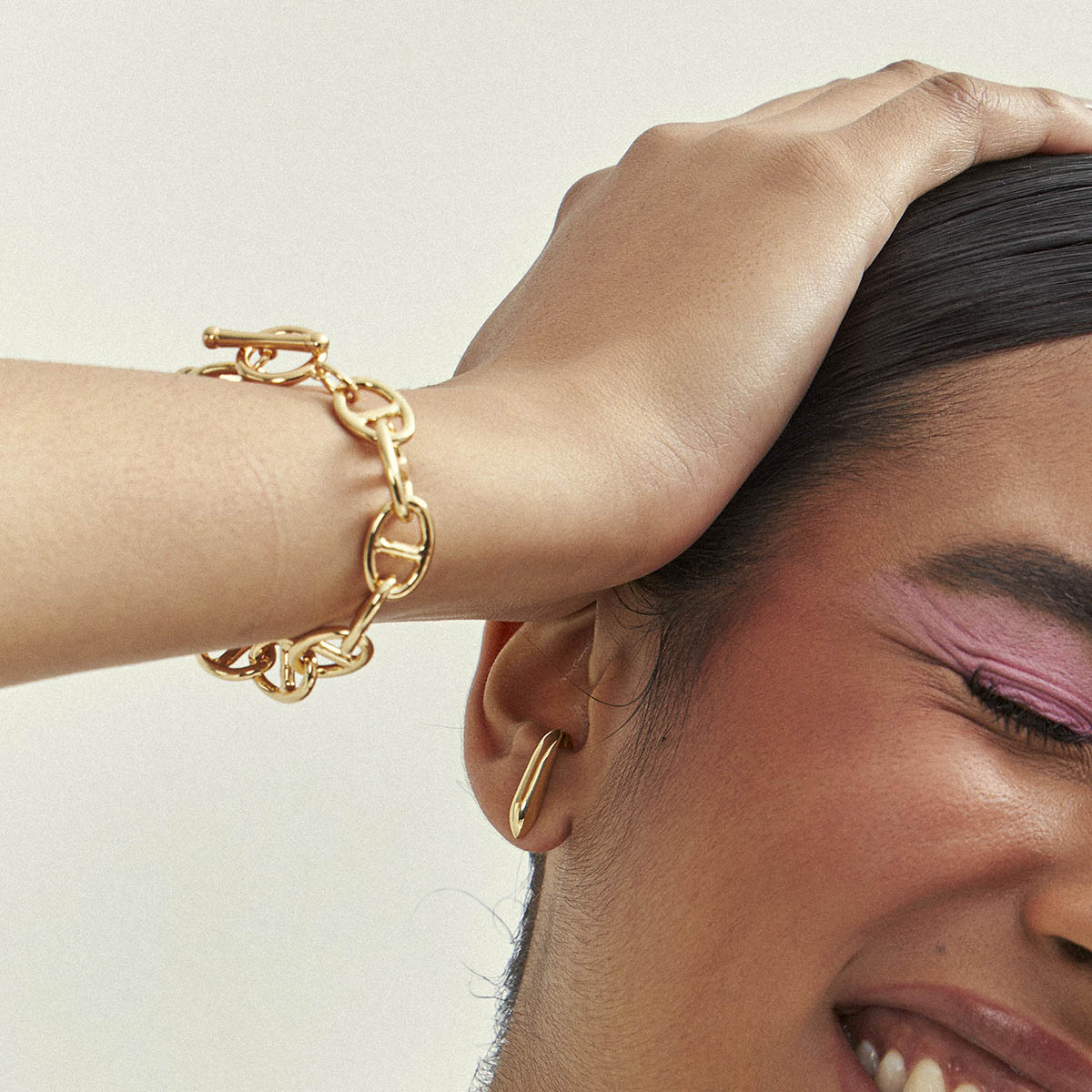 Pulseira banhada a ouro com elo de lacres oval vazado e fecho trava, ideal para quem busca um acessório elegante e moderno para compor diferentes estilos com praticidade e conforto.